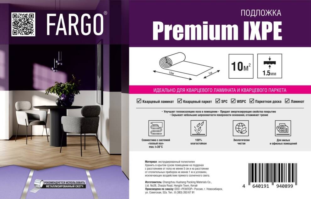 Подложка FARGO Premium (IXPE) 1м*10м*1,5мм (1 рул.- 10м2)